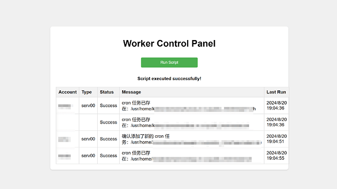 - 当你部署在serv00的网站不能访问时,通过访问worker,点击一下运行脚本就能马上执行任务了,避免了频繁的使用cron启动脚本登录网站执行命令